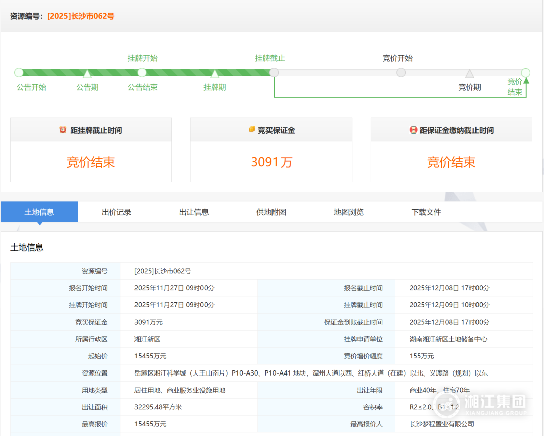 12月9日,湘江科學城傳來新消息,網(wǎng)掛編號為[2025]長沙市062號的優(yōu)質(zhì)地塊順利成交,由夢想置業(yè)公司成功摘得,總價約1.55億元。作為湘江科學城片區(qū)內(nèi)首個出讓的住宅地塊,本地塊的獲取標志著片區(qū)建設(shè)進入功能完善新階段。湘江科學中心目前,湘江科學城正按照“整體規(guī)劃、功能分區(qū)、分期開發(fā)”的總體思路進行開發(fā)建設(shè)。暮坪大橋河西聯(lián)絡(luò)線湘江科學城始終恪守“人產(chǎn)城”發(fā)展新邏輯,堅持“以人為本、以城聚人、以城促產(chǎn)”。未來,隨著平臺搭建成熟、產(chǎn)業(yè)落地生根、配套逐步完善,湘江科學城將形成一個巨大的高端人才、科創(chuàng)產(chǎn)業(yè)的聚集空 2025-12-10